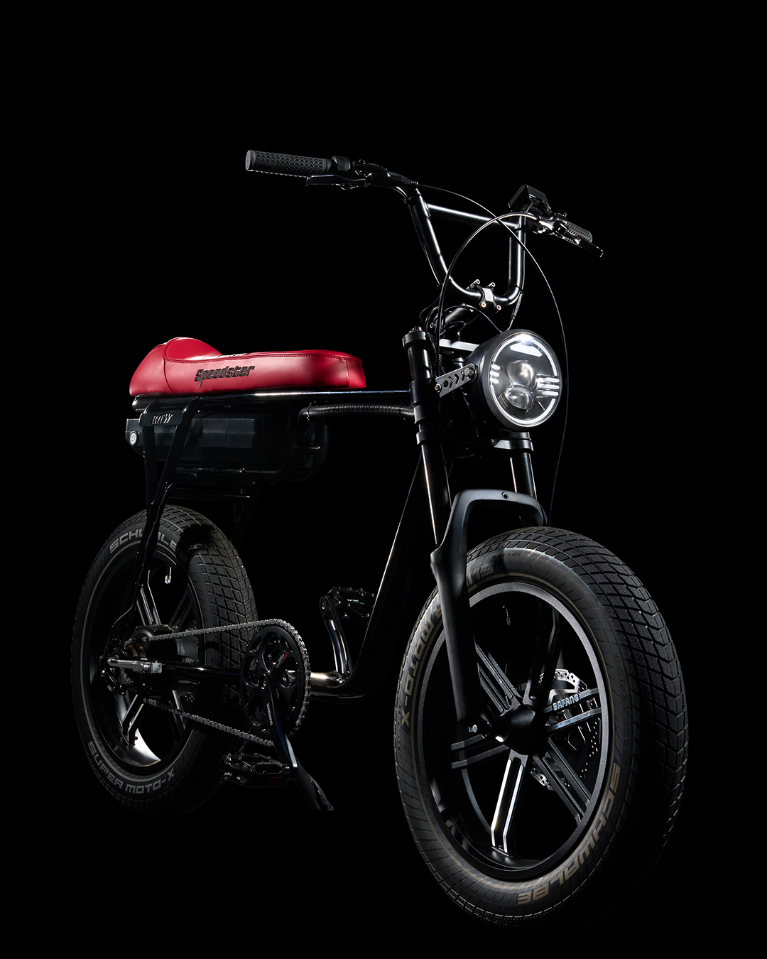 You choose the setup. 250W for the streets or 500W for the loose stuff. Both builds run on a 36V detachable battery with a 50-mile range and four-hour recharge time. Fitted with Schwalbe Super Moto-X tyres, the Speedster grips hard, rolls smooth and holds its own across urban routes or open terrain.